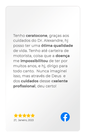 Especialista em Cirurgia Refrativa com anos de experiência e alta taxa de sucesso. Tecnologia de ponta para um procedimento seguro, rápido e eficaz. Recuperação rápida, com retorno às atividades em poucos dias. Acompanhamento personalizado antes, durante e após a cirurgia, garantindo os melhores resultados. + de 20.000 cirurgias realizadas com segurança e excelência.